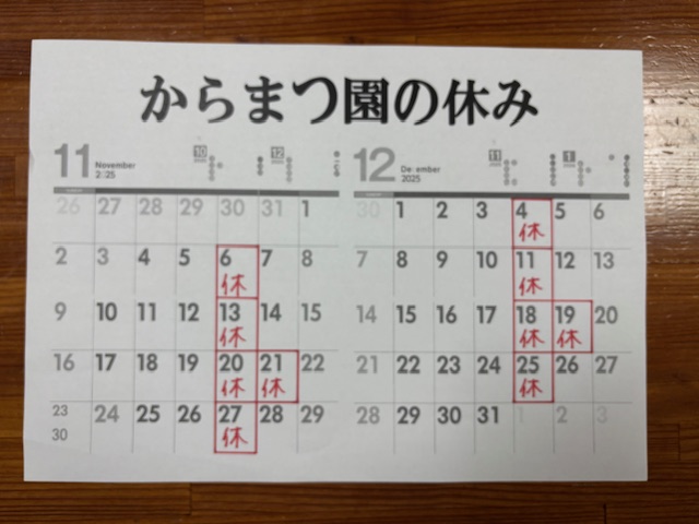 (ほか不定休あります)